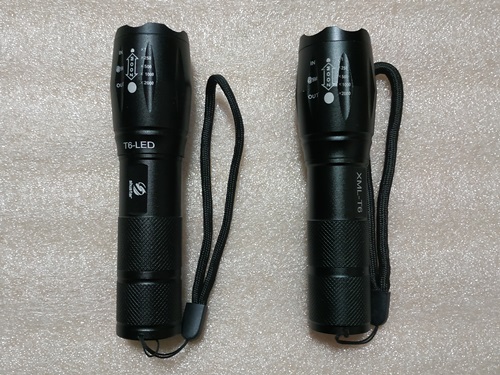 ▲ 버튼이나 반사판(?) 색상만 다를뿐 거의 동일했습니다. 국내에서 파는것도 어차피 중국에서 만든거 떼어다 파는거일테니까요. 충전지를 넣어서 켜보니 밝기도 엇비슷했습니다.