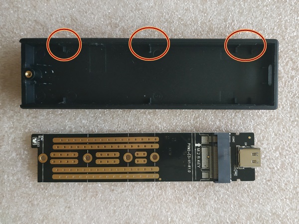 ▲ 저 플라스틱 동그란 홈 위로 SSD 기판을 얹습니다