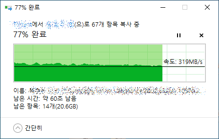USB 3.0 포트에 물려서 C드라이브에 복사를 할때(읽기)는 처음부터 끝까지 쭉 3~400MB 정도 나오는데,
