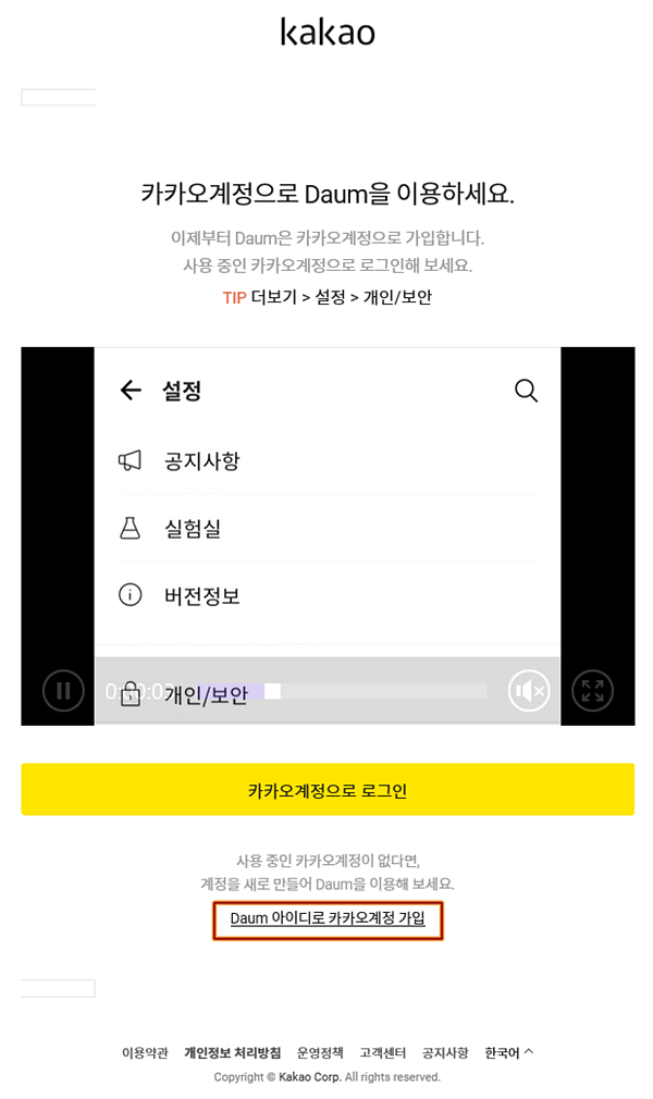 ▲ Daum 의 계정이 Kakao 계정으로 흡수 통합되어 넘어가는듯 했습니다.