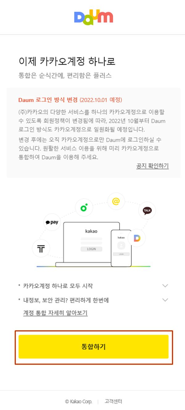 어떻게 계정통합을 해야 할지 몰라서 미루다가, 22년 10월부터는 다음 계정으로는 로그인이 안된다기에, 그냥 한번 계정통합을 진행해봤습니다.