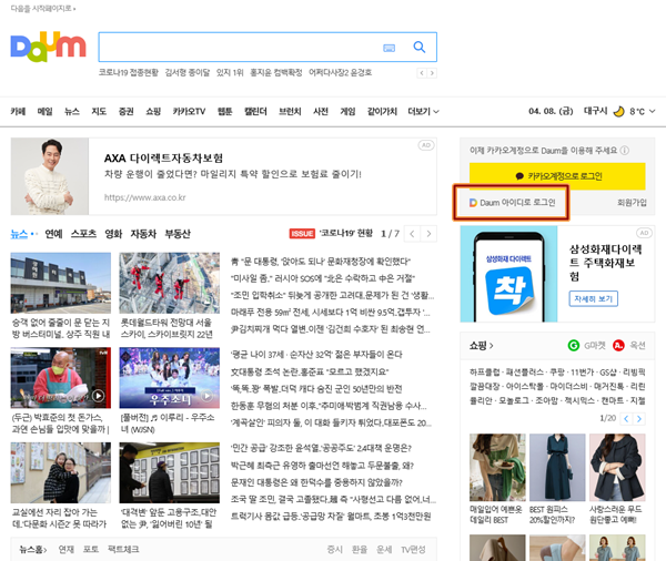 ▲ 아직 카카오계정으로 통합하지 않은 상태이므로 'Daum 아이디로 로그인' 을 눌러 로그인했습니다.
