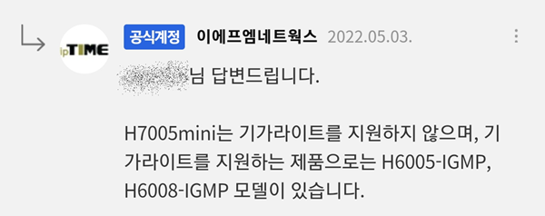 ▲ iptime 제품중에서 기가라이트 지원하는 제품은 H6005-IGMP, H6008-IGMP 모델이 있다고 합니다.