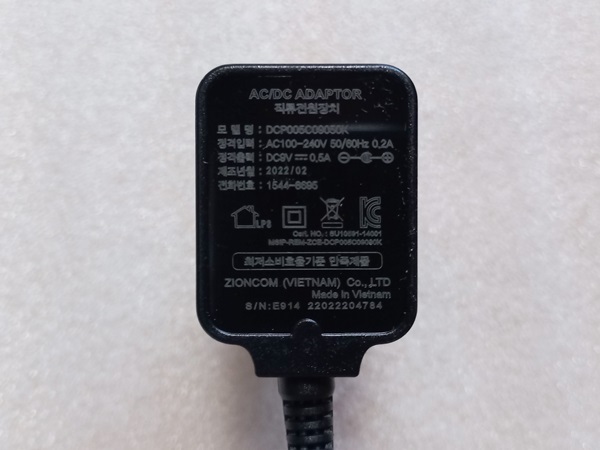 ▲ DC 9V 0.5A, 베트남 제조 입니다.