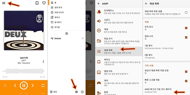 오랬만에 듀스 노래를 들어보려는데, 파워앰프에서는 괜찮은데 aimp에서는 한글이 깨져서 나오길래 인코딩 부분을 확인해봤습니다.