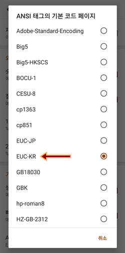 ▲ 위쪽에 있는 EUC-KR 을 선택해 보니....