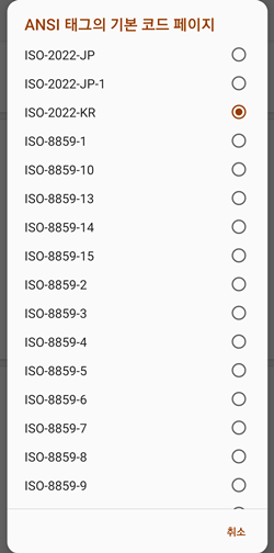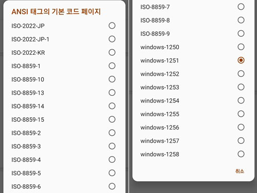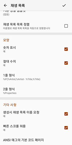 ▲ 설정 > 재생목록 > ANSI 태그의 기본 코드 페이지