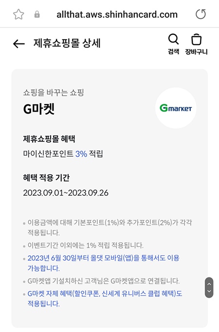 G마켓에서 물건 구매할일이 있었는데, 모처럼 신한앱 올댓쇼핑을 통해 구매하고나서 문자를 보니... 경유가 제대로 안될걸 알았습니다.