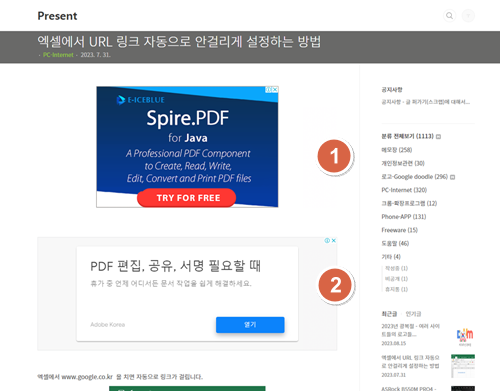 광고가 아주 없으면 가장 좋겠지만, 블로그를 이어 나가는데 소소하게나마 광고수익이 동기부여가 되곤합니다. 그래서 딴에는 컨텐츠를 보는데 불편하지 않는 수준이라고 생각하는 선에서 광고를 넣고 있었습니다.